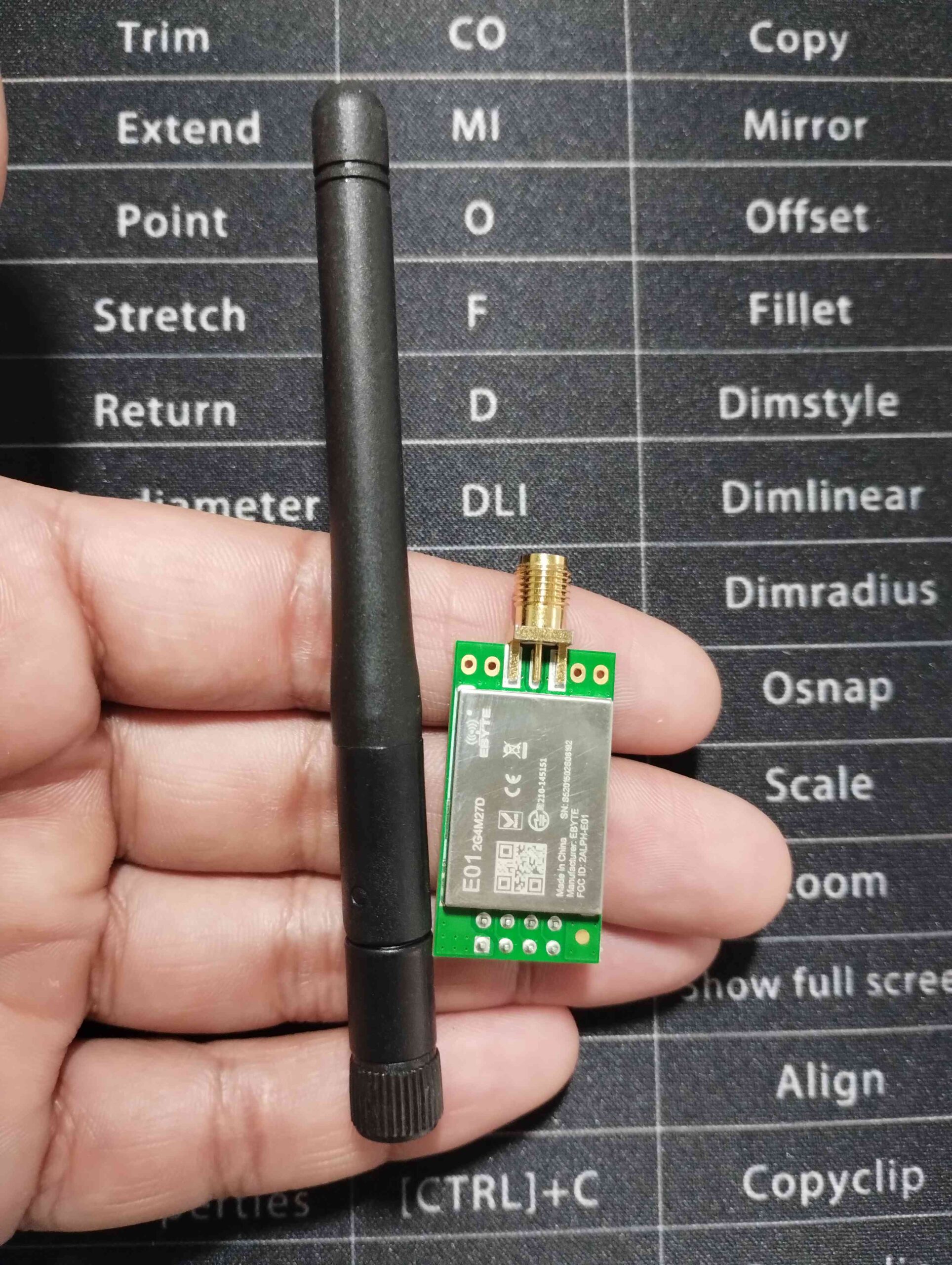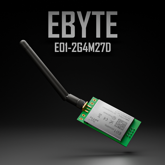 1x EBYTE E01-2G4M27D NRF24l01 PA LNA 27dBm, 1x 3dbi Long Range Antena
